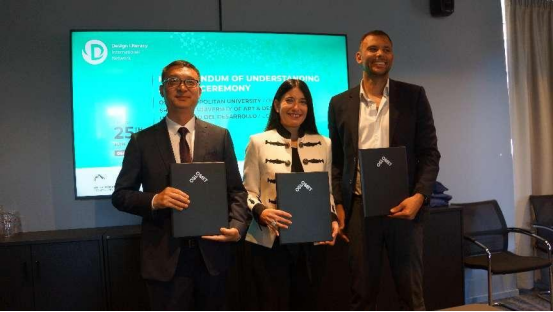 6月25日,代表团访问奥斯陆城市大学,与副校长Carl Christian Thodesen,艺术、设计与戏剧系系主任Liv Klakegg Dahlin,设计文化研究项目负责人Eva Lutnas,以及智利发展大学设计学院院长Alejandra Amenabar等就以国际设计文化协会为平台开展学术交流举行三方会谈。三方一致同意在前期良好合作的基础上,依托各自优势资源,在设计教育与项目实践领域进行更加深入的合作并签署三方合作协议。会后,代表团参观了奥斯陆城市大学教学空间与重点实验室。