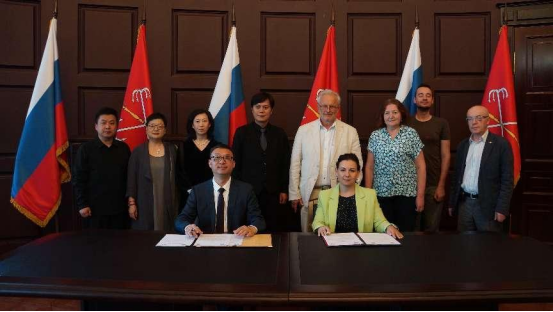 6月29日,代表团访问山东省政府驻东欧中亚经贸代表处,与首席代表秦海峰举行会谈,俄中教育基金会相关工作人员陪同访问。访问期间,秦海峰高度肯定了304am永利集团官网在服务山东经济文化发展、承担重大设计社会服务项目中表现出的社会责任感和极高的设计水准;韩文涛向山东省政府驻东欧中亚经贸代表处在促成永利官网与圣彼得堡国立工业技术与设计大学开展合作办学项目中发挥的积极作用表示感谢。双方一致同意加强合作、深度融合,就共建上合国际设计研究院等项目达成一致意见。