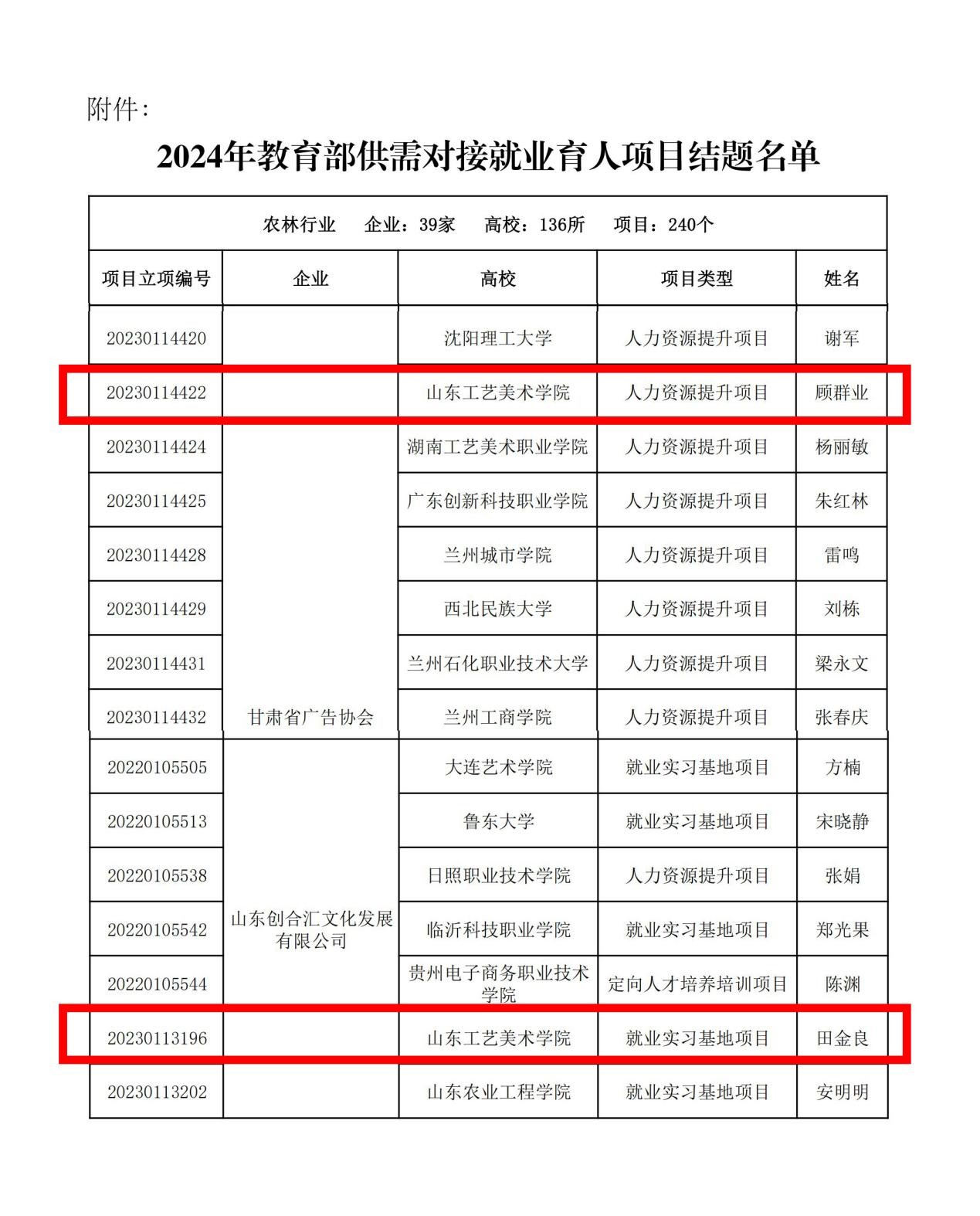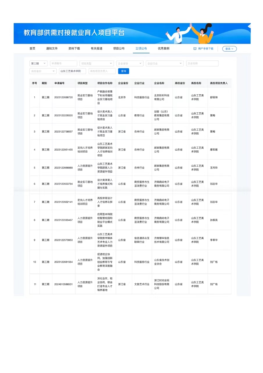 近日,教育部公布了2024年供需对接就业育人项目结题验收结果和教育部第三期供需对接就业育人项目立项名单,学校2个项目顺利通过结题验收,其中,人力资源提升项目1个、就业实习基地项目1个;11个项目成功立项,其中人力资源提升项目5个,就业实习基地项目4个,定向人才培养培训项目2个。