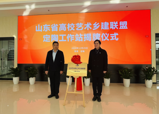 开幕式上,永利官网合作发展处处长、工业设计学院院长张焱与定陶区政府党组成员、副区长王军华共同为“山东省高校艺术乡建联盟”定陶工作站揭牌。