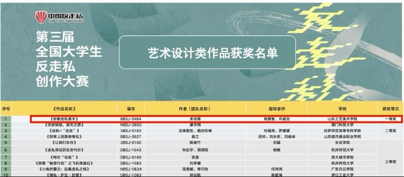 本次获奖,是永利官网学子积极传播反走私理念的生动践行,充分展现出学校在人才培养、实践教学等方面的卓越成绩。学校将以此次大赛为契机,进一步加强宣传教育,鼓励学生在创作中关注社会热点,提升专业素养与社会责任感,为维护国家安全稳定和社会经济秩序贡献青春力量,充分展现新时代山工艺青年学子的责任与担当。