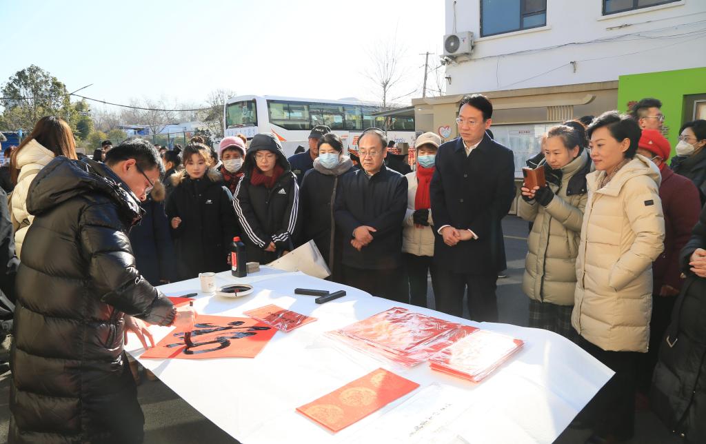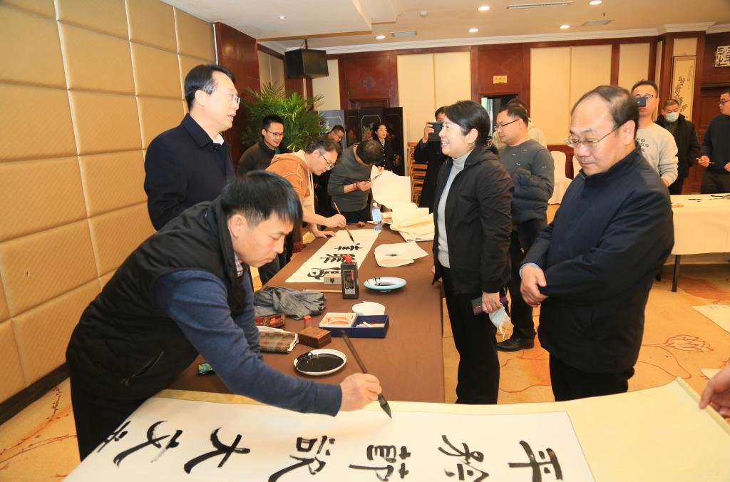 省派驻济宁市“四进”工作总队队员,济宁市有关领导,市文旅局、孔孟书画院、济宁高新区有关负责同志,济宁高新区洸河街道黄庄社区部分群众;学校党委(学院)办公室、党委组织部、财务处、造型艺术学院等部门负责同志及书画专业师生代表参加活动。