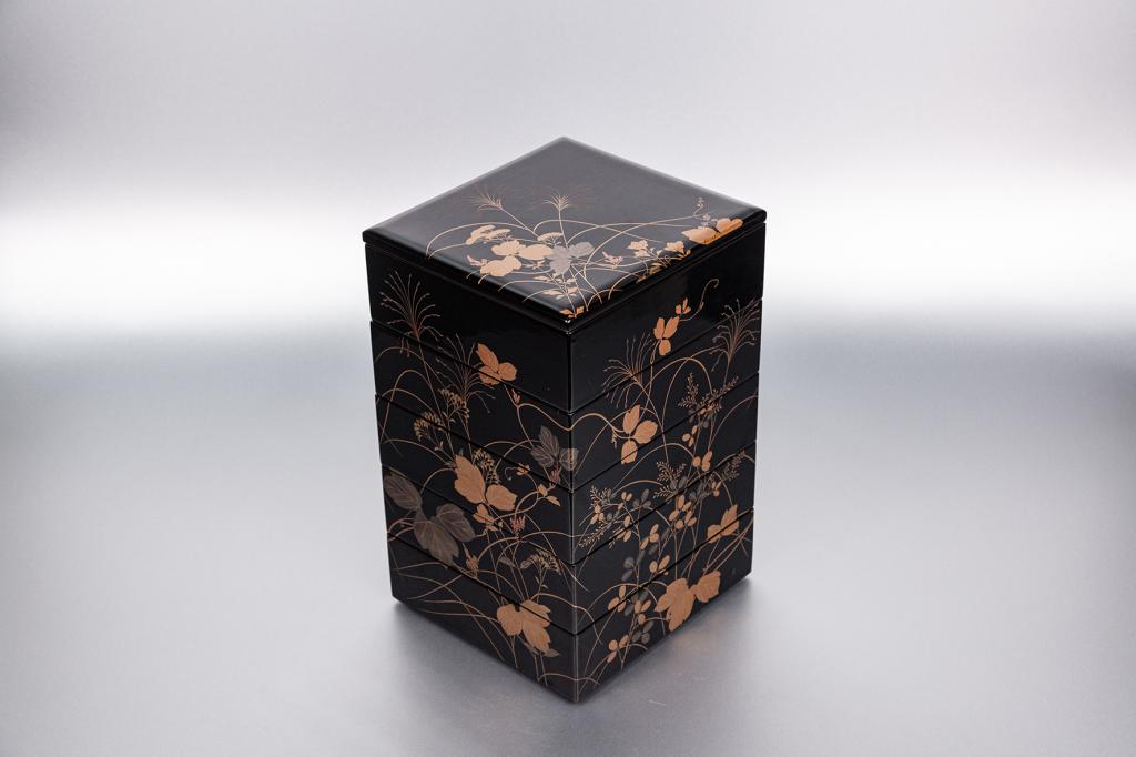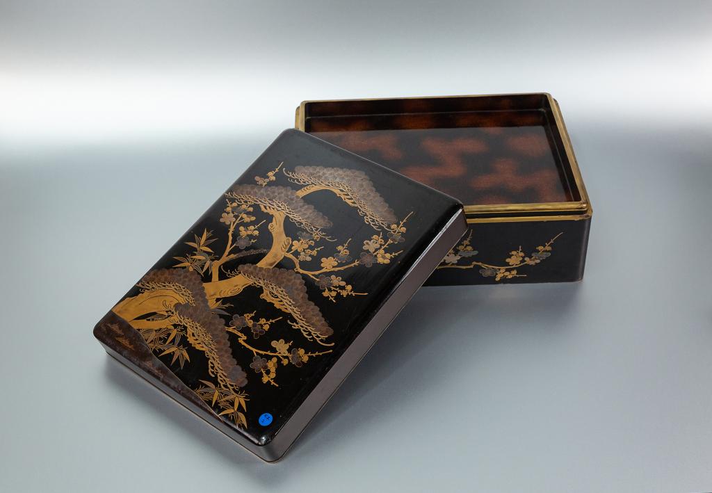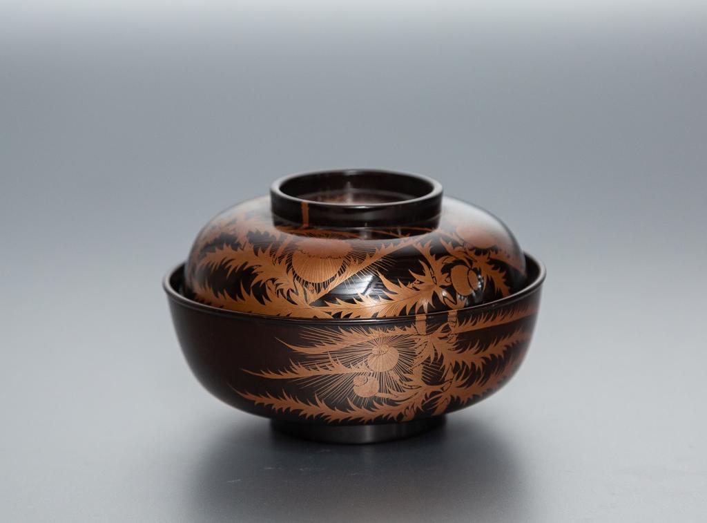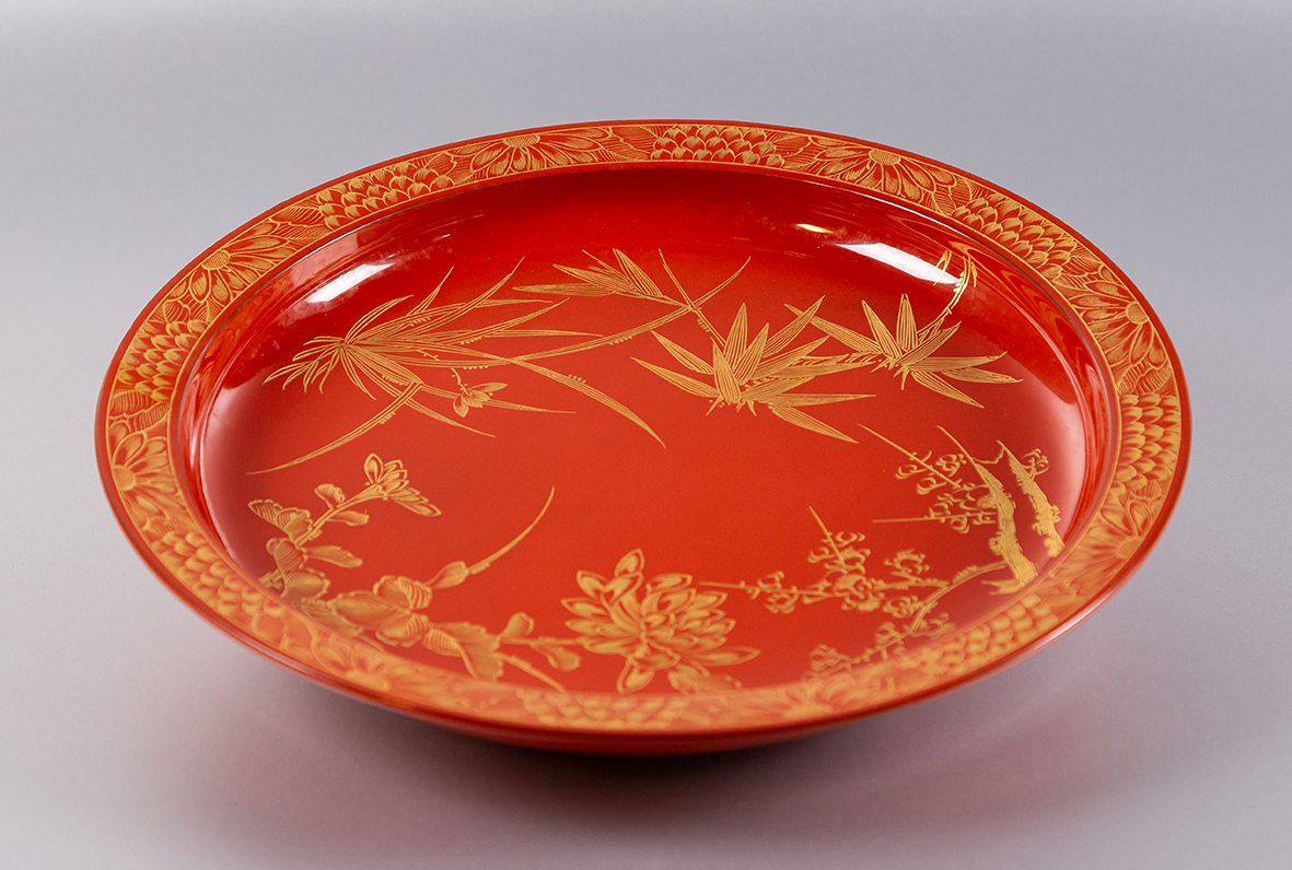 日本漆器艺术在传承中国漆艺的基础上,经过本土化创新,发展出独特的工艺体系。从材质选择、髹漆技艺到装饰风格与地域流派,体现着匠人对大自然的敬畏与对极致美学的执着追求。展览所展出的漆器,皆源自日本民间,包括漆盒、漆椀、托盘、茶具、首饰以及文房用具等多种日常器型,其胎体工艺以木胎为主,常用榉木、桧木等优质木材,经雕刻、镟木或拼接成形。装饰技法以莳绘和沈金为核心,图案取材于日本民间传统题材,色彩运用黑、红、金为主色调,精准勾勒出日本民用漆器的经典艺术风貌。