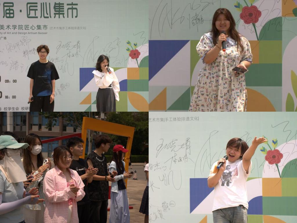 集市现场吸引了大量校园开放周期间来校参观的嘉宾、校友、家长以及学校师生参与其中。集市摊位涵盖了服装设计、文创/造型、产品设计、工艺美术、非遗传承、传统书法绘画以及民艺创新等多个领域,充分展现了学校的专业特色和永利官网大学生的创新意识。同时多场文艺表演,也为集市增添了欢乐氛围