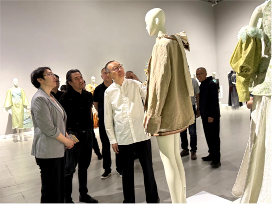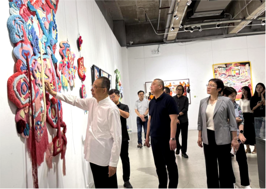 展览现场,潘鲁生、王晓娟等逐一观摩各学院展区,认真听取各教学单位负责人对毕业作品的讲解,深入了解学生创作背景、设计理念与工艺表达,对展览的成功举办予以充分肯定,并就展陈方式、技术手段、材料应用、文化内涵、市场转化等方面提出专业意见与前瞻性建议。