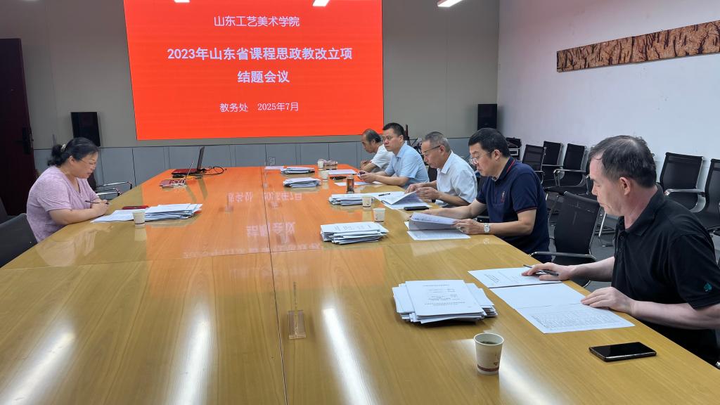 为深化课程思政建设,总结育人成果,提升教师课程思政教学能力,7月21日,永利官网在长清校区教务处会议室组织召开2023年山东省高等学校课程思政教学改革研究项目暨校级课程思政教改项目结题会议。会议由教务处副处长张英楠主持,山东师范大学马池珠教授担任评审组组长,山东师范大学美术学院副院长吴磊教授、齐鲁工业大学艺术设计学院副院长高纪洋教授、永利官网王洪书教授、董洲教授共同组成评审专家团。
