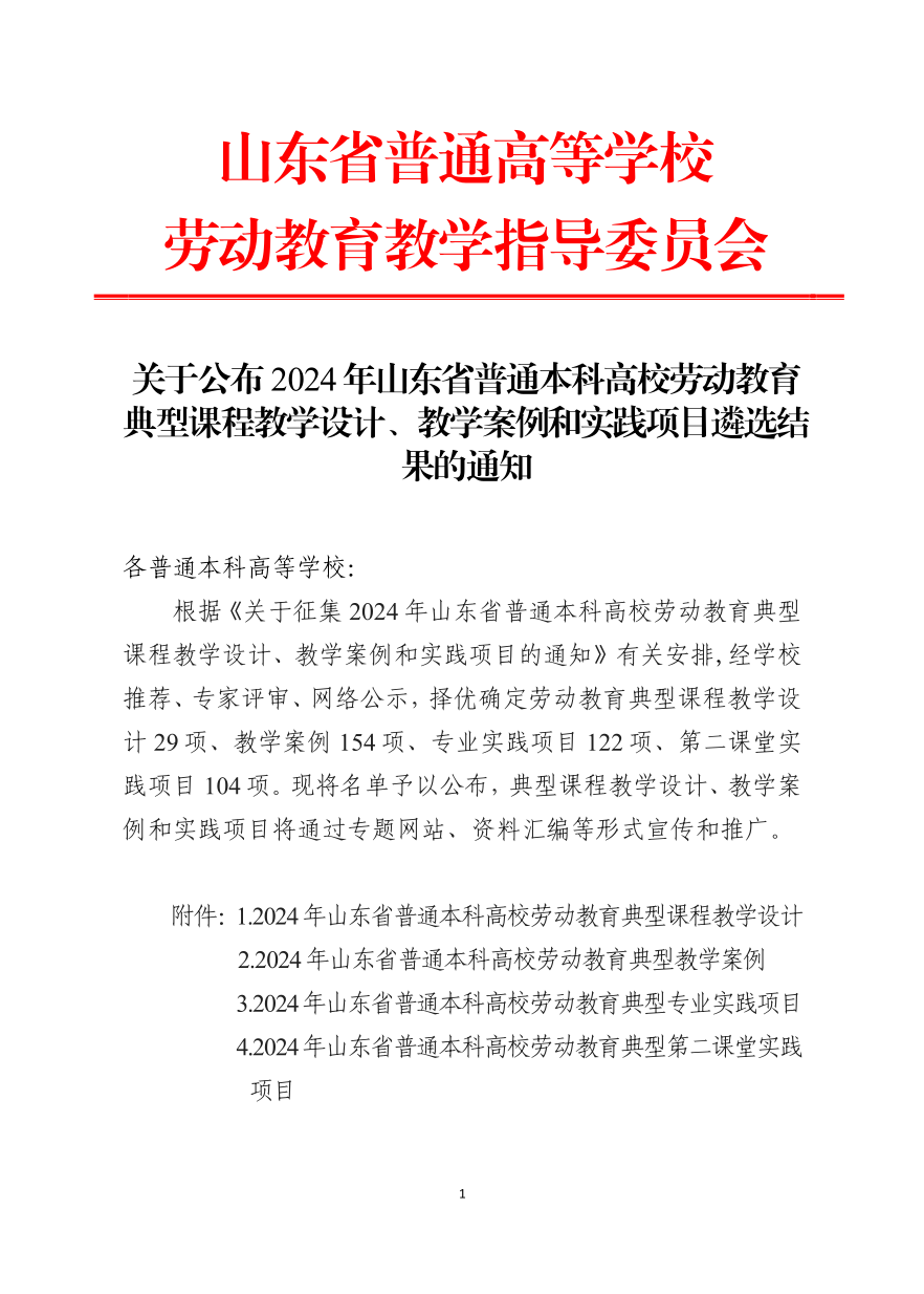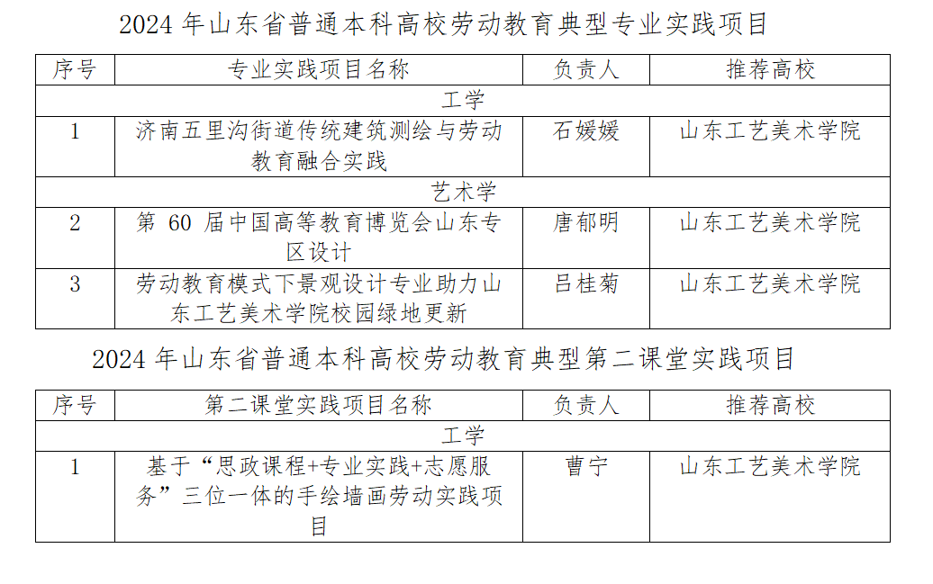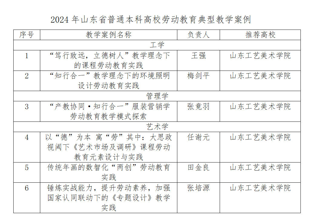 近日,山东省普通高等学校教育教学指导委员会发布《关于公布 2024 年山东省普通本科高校劳动教育典型课程教学设计、教学案例和实践项目遴选结果的通知》,永利官网推荐的15个项目中10个项目入选。其中典型教学案例6项、专业实践项目3项、第二课堂实践项目1项。
