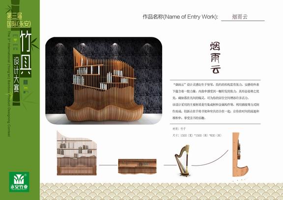第三届国际(永安)竹家具设计大赛于10月9日在福建省永安圆满落幕。大赛分实物类作品组和非实物类作品组,分别设金奖1名、银奖2名,铜奖4名,优秀奖10名,入围奖若干。永利官网2011级家具设计专业杨筱作品《烟雨云》获大赛非实物类作品组金奖,奖金15000;李娜作品《绕》和徐丽华作品《茶韵》分别获大赛铜奖,奖金5000;尹凯作品《梁祝》、周广鑫作品《春风物语》、徐露作品《竹韵清风》获优秀奖;王天军作品《夏凉》、时萌萌作品《竹先生》、魏崇杰作品《竹琴》、宋延炉作品《曲致有节-竹书架设计》、宋延炉作品《托盘》、杨筱作品《东南西北》、徐丽华作品《禅坐》、刘刚《花残》、王浩然作品《流瀑》、尹凯作品《简桌》、张曼作品《悟心》分别获入围奖。应用设计学院家具设计专业教师王所玲获“金牌指导教师奖”,我院获大赛“优秀组织奖”。 国际(永安)竹家具设计大赛是目前国内乃至国际竹家具界具有重要影响力的设计竞赛,大赛每年一届,已连续成功举办两届。今年的大赛主要面向国内外著名设计机构、设计院校、竹具产业链有关企业及对竹具设计有专长和兴趣的社会人士征集作品,共收到来自中国大陆、美国、韩国、我国台湾地区等地设计院校师生、企业设计师优秀作品共计2263份。我院学生在专业老师的带领下,以家具设计学生为主体,经过认真组织辅导,共向大赛组委会提交作品150余件。 本届大赛以竹材为基材,同时鼓励竹材与其它材料的综合应用,要求注重产品功能及造型的创新,具有可批量生产性,并具有一定的主题和寓意,旨在提升竹具原辅材料的研发和应用水平,促进竹材在竹具行业中的广泛创新应用,提高中国竹产业的国际品牌影响力和市场附加值,为国内外有关设计机构、知名设计师、工艺技术师及竹业从业人员提供展示的舞台,促进竹家具研发机构以及设计人才的国际合作与交流。