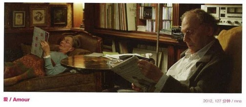 :展映2012年戛纳电影节的金棕榈大奖的法语片《爱》。该片包揽了2013 年凯撒奖的最佳影片、最佳导演、最佳男主角、最佳女主角、最佳原创剧本五项大奖,并且是2013 年奥斯卡最佳外语片。
