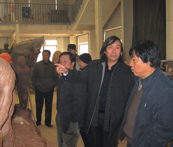 12月5日上午,苗登宇副院长视察雕塑特种工艺实验室,对造型艺术学院08级雕塑班毕业创作进行指导。教务处处长董占军、研究生处处长唐家路、人事处处长韩世春、造型艺术学院院长雷家民、雕塑教研室主任李霁等陪同。 造型艺术学院院长雷家民汇报了雕塑专业毕业创作的进展情况,雕塑专业教研室主任李霁重点就本次毕业创作的主题、理念以及特色进行介绍,并陪同苗登宇副院长等观看学生毕业创作。苗登宇副院长对本次毕业创作工作给予了充分肯定,认为本届毕业创作指导教师李霁教授和杨勇智老师,严格把关,细致指导,确保了毕业创作的质量和进度。今年雕塑专业的毕业创作以写实人像组雕的形式,分别表现古代名人(竹林七贤)、近代历史事件(戊戌六君子)、革命战争场面和当代现实主义题材(煤矿工人),选题适宜,立意深刻,内容丰富,既能展示同学们的学习成果,又能充分表达创作者自己的情感。苗登宇副院长认为,雕塑专业毕业创作将当代艺术观念与教学实践相结合,使学生以具象写实造型手段,结合自己的生活体验和艺术想象力展开创作,形式新颖,艺术语言丰富,贴近时代特色,呈现了多元化的艺术风格。 苗登宇副院长一行还从雕塑作品的人物造型、服饰、神态、布局关系及材料运用等方面进行了详细指导,提出了具体的修改意见。