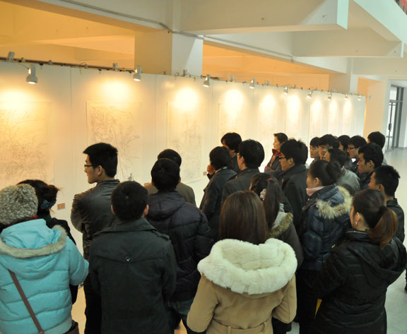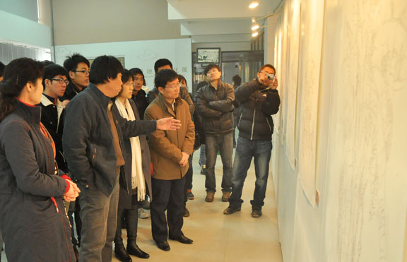 12月5日上午,永利官网造型艺术学院花鸟山水工作室国画写生线描展、山水临摹课程作业展分别在长清校区图书馆一楼和教学一楼隆重开幕。副院长李新、张云龙亲临现场参观指导,造型艺术学院院长雷家民、党总支副书记闫燕及部分师生一同观看了展览。 由造型艺术学院院长雷家民教授指导的写生线描展和王鹏老师指导的山水临摹课程作业展,共展出四十余名学生近两百件作品。参观过程中,造型艺术学院院长雷家民详细介绍了线描展和课程作业展的基本情况,并陪同领导观看。校领导李新、张云龙认真观看,细致品评,并与造型艺术学院师生进行了亲切交流,现场气氛热烈。 校领导充分肯定了造型艺术学院“以创作提升教学,以督导促进管理,以展览推进交流”的工作思路,认为定期举办学生作业作品展对提高学生的创作热情,为同学们提供展示自身才华、探讨艺术创作与研究的平台,进行艺术交流具有重要作用,是一种非常有效的学习交流方式。校领导表示,本次展览作品内容充实、立意新颖,风格多样,表现出强烈的时代性、多元化和创新性,体现了学生扎实的绘画功底和较高的审美水平,是造型艺术学院基础课教学成果的体现。 在展览现场,造型艺术学院的师生还围绕作品创作理念和技法进行深入交流讨论,将画展变成了课堂,氛围活跃,取得了良好的效果。