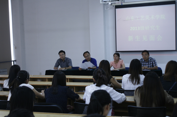 董处长首先向新同学的到来表示祝贺和欢迎,并简要介绍了学校的基本情况以及研究生教育的发展历程,随后着重就研究生期间的学习和科研提出了几点建议和要求,希望同学们能够结合所学专业,制定个人的学习计划,尽早确定论文选题,有计划地进行学术研究和设计实践,积极参与导师的课题研究,多跑图书馆,多去工作室,养成良好的学风,充分利用和珍惜研究生的学习时光,真正把自己培养成为高层次应用型设计艺术人才。随后吴修成老师就研究生期间的课程安排、作业与成绩管理办法以及学位论文、毕业设计相关要求做了说明;王伟杰老师就研究生期间的学习、生活和纪律等方面进行了补充和说明。