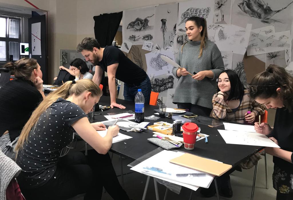视觉传达设计学院副教授张小娟老师受邀于捷克共和国普金耶大学(www.ujep.cz)成功举办讲座和工作坊教学活动。2019年3月3日到9日,张小娟老师接受普金耶大学Kerel Míšek米谢克教授邀请前去讲学,并成功举办了题为“水如镜---略谈视觉设计中的东方精神”的公开讲座和主题为“向自然学习”的工作坊项目。讲座由普金耶大学艺术学院院长,著名艺术家Pavel Mrkus马库斯教授主持。来自普金耶大学艺术学院不同专业师生共同出席了讲座,来自平面设计第一工作室的本科生与硕士生们参与了工作坊项目,成功做出了自己的图形作品,并最终将作品应用在了东方风情的具体物品上。