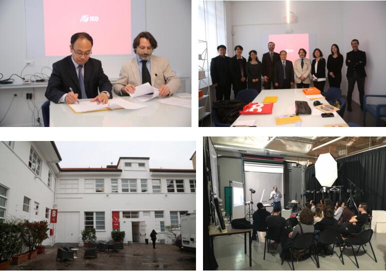 米兰新美术学院首席行政官及院长Alberto Bonisoli、商业发展部高级经理Manila Campisi、商业发展部助理Giovanni Cortese等人接待了代表团一行,并陪同参观了服装设计工作室、信息设计工作室、工业设计工作室、媒体设计工作室等教学环境。参观结束后,双方进行了会谈,相互介绍了各自学校的发展情况、学科设置、专业设置、课程设置等情况,就两校之间的未来合作进行了沟通和探讨,就两校师生互访、研究项目合作、学术交流和合作办学等项目达成了初步意向,并签署了合作框架协议。