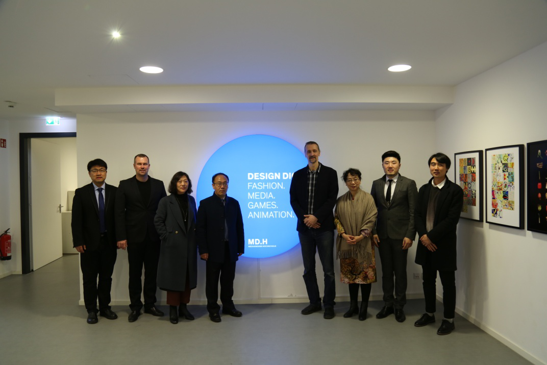 3月27日,代表团一行首先访问了柏林媒体设计学院。 柏林媒体设计学院设有柏林、慕尼黑和杜塞尔多夫三个校区,是一所以媒体设计为主要专业方向的高等专业学院,本科类专业有:数字电影设计、动画、视觉特效、游戏设计、媒体设计(国内称视觉传达设计)、服装设计、媒体管理;硕士研究生专业有:媒体管理、艺术管理以及游戏设计等。这些专业的授课模式分为全日制和在职培训两种。此外,柏林媒体设计学院还提供其它的培训课程,这些课程以形象设计、声音媒体设计以及数字和印刷媒体设计为主。2016年两校签署合作协议,建立了友好院校关系。