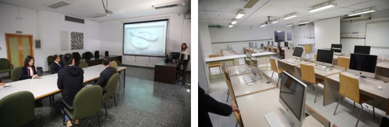 会谈结束以后,在校方的陪同下参观了马拉加大学艺术学院的雕塑艺术工作室、摄影艺术工作室、绘画艺术工作室、数字艺术工作室等相关教学设置,并听取了该校专业教师的作品展示汇报,详细询问和了解了学校的教学基本情况,学校实验室建设情况,学校工作室的管理情况和学生的教学安排等。