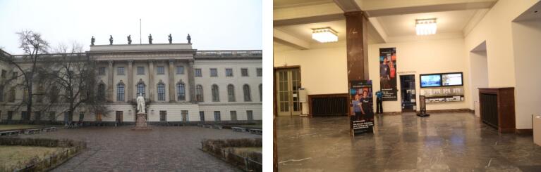 3月28日,代表团一行参观了德国著名的柏林洪堡大学。洪堡大学位于柏林市中心的菩提树下大道上,是欧洲最具影响力的大学之一,在世界百强大学中占有一席之地。这座首都柏林最古老的大学是世界上第一所将科学研究和教学相融合的新式大学,拥有十分辉煌的历史,被誉为“现代大学之母”,马克思、恩格斯、爱因斯坦等都曾在此任教或学习,其“学术自由、教学自由、学习自由”的“洪堡精神”也影响到了几乎所有的现代大学。洪堡大学也为中国培养了众多人才,如美学家宗白华、气象学家吕炯、地球物理学家赵九章、历史学家陈寅恪、周恩来总理等人都曾在此就读过。代表团参观了洪堡大学的教学环境,了解和考察了学校的历史和院系设置等情况,留下了深刻的印象。