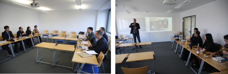 3月27日下午,在柏林媒体设计学院的会议室,双方就中德合作办学等相关议题展开了座谈。双方就中德合作办学的具体事项,如合作专业、教学安排、课程设置、学分互认以及教师互派等交换了意见,就专业设置情况、双方具体课程对接、师资情况、语言问题、费用分配等进行研讨磋商。双方取得了广泛认同并最终达成具体共识,顺利签署了合作办学的相关文件。