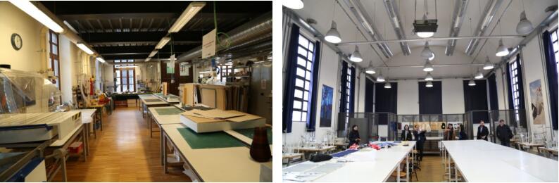 代表团在参观欧洲大学的教学空间以及实验室、图书馆等教辅空间时,可以感受到国外高校对于教学空间设计的重视,体现了以人为本、以学生为中心的设计理念:尽可能的对教学空间进行充分的合理利用,而这种设计又有各自国家的特点。在德国的柏林媒体设计学院,对学生作品的公共空间展示设计和教学空间的视觉导视系统设计,体现了德国人的严谨;对课桌等布线等细节的合理设计,体现了设计的认真和对细节的追求。在意大利更多的体现出了对文化的重视和对时尚的追求,很多高校的历史悠久的建筑和博物馆得到了很好的保留。在教学空间和教学氛围的营造上,我们还需要向欧洲院校学习。
