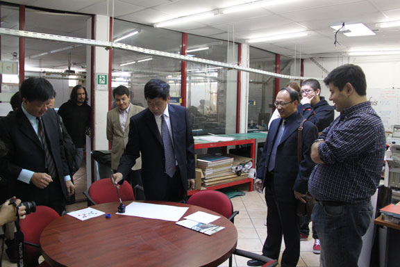 当地时间11月16日上午,304am永利集团官网党委书记于茂阳教授率领财务处处长王玮、国际交流与合作处处长康健、学生处处长陈军,视觉传达与设计学院党总支书记张军波,服装学院副院长杜莹参观访问了智利天主教宗座大学。智利天主教宗座大学圣•卡洛斯校区主任安娜•马丽亚、国际处处长卡洛斯•海恩利西森、设计学院院长安德雷斯•维雷拉、视觉传达学院院长约瑟•法兰西斯科及国际协议和服务协调员帕特丽莎•拉丁奥夫陪同参观。智利天主教宗座大学,由罗马天主教会于1888年创建,是教廷教育部直属管理大学。经过一个多世纪的发展壮大,现已是一所包含人文科学、社会科学、自然科学、技术科学、经济管理科学和保健科学在内的综合大学。目前有13个分校区、33个专业、9个二级学院,在校生达6.5万人。其中该校的设计学院和视觉传达学院引领着智利的设计发展,拥有平面设计、工业设计、服装设计等7个专业,2个校区,学生10000多人,占智利设计类在校生总数的25%。访问团主要参观了设计学院所在的圣•卡洛斯校区,并观摩了该校的2012视觉周活动。参观过程中,访问团分别了解了校区建设规划、授课形式、实验室使用、学生活动等情况,并进入教室与师生进行交流互动。