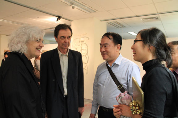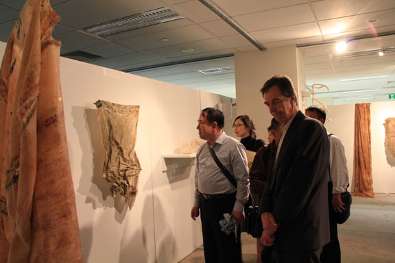 2011年11月16日下午,当地时间6点30分,新西兰、澳大利亚工作访问团一行参加了新南威尔士大学美术学院《荣誉学士作品展》开幕式并参观了展览作品。美术学院院长伊恩·霍华德,副院长沃恩•瑞斯及环境与空间设计系主任徐放陪同参观。参展作品展示了美术学院创意思维教学的成果。众多概念设计、概念性绘画作品,立意新颖,表现手法多样,揭示着学生们的活跃思维和表现性展示。很多作品同时体现出艺术与科技的联手,跨学科选修的学习成果。展览策展人对杨新力副书记一行参加展览开幕展式并观看展览表示欢迎,并赠送画册表达谢意。