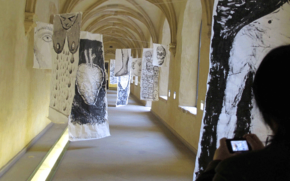 10月26日至28日,由中国艺术研究院、欧盟文化中心合作组织主办的第四届中欧文化对话,在卢森堡新明斯特修道院文化中心举办。卢森堡荣誉首相雅克·森德出席开幕式。卢森堡文化部部长莫德特、中国艺术研究院副院长王能宪、欧盟文化中心合作组织副主席拉加斯、卢森堡新明斯特修道院文化中心主席多肯多夫出席会议并致辞。304am永利集团官网艺术家、美术馆副馆长王瑞青作为论坛展览工作坊艺术家出席了本次研讨活动,与中欧艺术家就传统艺术与当代艺术的关系、艺术在文化沟通中的作用、文化自信与艺术家创作等话题进行了深入的探讨。从2008年开始举行的中欧文化对话,每年举办一届。前3届中欧文化对话先后在中国北京、丹麦哥本哈根、中国上海成功召开,为中国与欧盟深入展开文化交流、合作搭建了重要桥梁。拉加斯在致辞时说:“我们的目标是保护和促进文化表现形式的多样性。前3届的文化对话为我们的交流树立了信念和决心,第四届文化对话将进一步加强我们的相互了解和合作伙伴关系。”本届中欧文化对话为期3天,来自中国相关文化艺术机构的20多位专家学者和来自卢森堡、德国、英国、法国、丹麦、比利时、奥地利等欧洲国家以及欧盟文化中心合作组织的200多名专家学者参与了本次对话。我国文化艺术界的专家学者杨帆、贾磊磊、田青、丁亚平等与欧洲艺术家就全球视野下的非物质文化遗产保护、城市文化发展、文化创意产业价值、21世纪艺术的作用等议题进行了广泛而深入的讨论与交流。与会中欧两国学者在论坛发言中多次提及王瑞青创作的装置艺术作品《卷·语》,并给予了高度评价。与会者认为,王瑞青的创作是对古老文字拓印技术的转译与保护。作品中出现的“三字经”等文字和符号,并非仅仅以其本来的内容和意义而存在,更在于它们在现代装置形式中所产生的艺术美感。艺术家所用的中国传统水墨画“计白当黑”的表现手法,体现了中国古老哲学中“阴阳相克相生”的造物理念。展览中,将平面化的传统水墨意象以立体装置艺术的形式配合创作影像进行展示,实现了传统与当代、东方与西方在艺术理念上的对话与融合。这种用现代材料、工具、观念与传统工艺结合的艺术创作手法,在对文字符号的解构与重建中,获得了一种创造新形式和新图像的书写方式,是一次别出心裁的装置艺术创作。