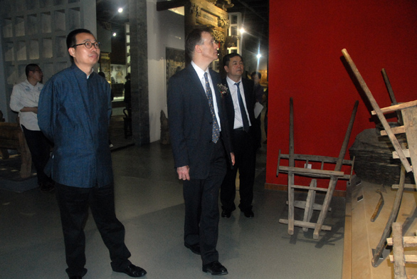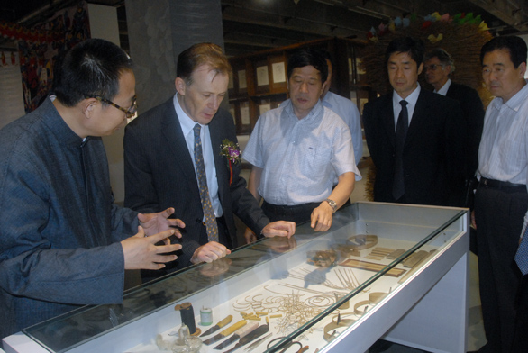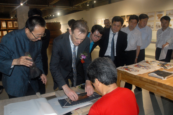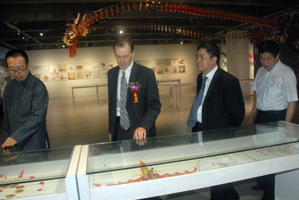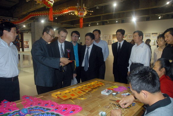 5月21日下午,澳大利亚驻华公使梅耕瑞,山东政协副主席李德强,山东艺术学院党委书记柳文敏,长清区委书记覃俊文,济南市西区投融资管理中心主任王迪生,济南市外事办公室副主任高斌,长清区委宣传部部长刘明霞,澳大利亚著名策展人牛睿智,澳大利亚中国艺术项目总监托尼,四川美院新媒体艺术系主任张小涛,中国策展人王泊乔,济南园博园国际会展中心董事长杨维国一行来到永利官网长清校区参观访问。党委书记于茂阳,院长潘鲁生,党委副书记、纪委书记裴新锋,副院长李新、刁在祥,院长助理、院长办公室主任王立果陪同参观。 梅耕瑞一行参观了正在美术馆展出的“手艺农村——潘鲁生主持山东农村文化产业调研成果展”,深入了解了山东农村文化产业调研项目成果及“手艺农村”展览情况。潘鲁生院长在介绍中提到,我国作为世界上有着悠久历史和文化底蕴的大国,近年来文化创意产业呈蓬勃发展态势。山东省有着丰富的传统手工艺遗存,农村手工艺产业继承传统手工艺“量材为用,就材加工”的价值理念。农村文化产业植根乡土,具有蓬勃的生命力、创造力和发展潜力。我们举办这个展览,希望可以让更多的人了解农村文化建设和农村文化创意产业的现状,并力图在保护中国传统手工艺术的同时,使之与文化、经济相结合,为我省农民生活水平的改善和文化经济的提升起到推动作用。本次调研成果展览,在传统手艺资源的基础上,还组织大学师生开展创意和设计,形成了很多精彩的设计作品。 潘鲁生院长还指出,时至今日,艺术创作已经不再是个人单打独斗的时代,多专业背景艺术家的跨界合作渐成潮流。中国和澳大利亚在地理上的遥远距离并不能阻隔两国在文化领域的交流,希望今后永利官网能与澳大利亚相关院校进一步加强艺术上的合作与交流。 梅耕瑞公使一行对充满设计元素和现代生活元素的手工艺产品流露出浓厚兴趣,认真了解了临沂红花乡中国结、草柳编,潍坊年画、风筝,菏泽曹县桐杨木雕刻、鄄城土布、巨野农民工笔绘画等手工艺产品的设计、生产、销售收益及产业模式,并同现场的农村手工艺人进行了亲切交流。他们充分肯定了潘鲁生院长所带领的“手艺农村——山东农村文化产业调研”课题组在农民手艺产业研究领域所取得的成果,以及“手艺农村”课题组对农村手艺文化产业发展的认识。来宾一致认为,艺术不分国界,结合了现代创意和当代艺术理念的中国传统手艺产品,定会为中国乃至全世界人民所接受喜爱。 随后,梅耕瑞一行还参观了永利官网2011届毕业生作品展、民艺博物馆、孙长林艺术馆,对馆内展示的我国劳动人民的件件智慧结晶作品啧啧称奇,赞叹不已。梅耕瑞公使称赞永利官网美术馆和博物馆的展出是一场“精彩、有创造力、令人印象深刻和感动的展览”。 永利官网相关部门人员陪同。