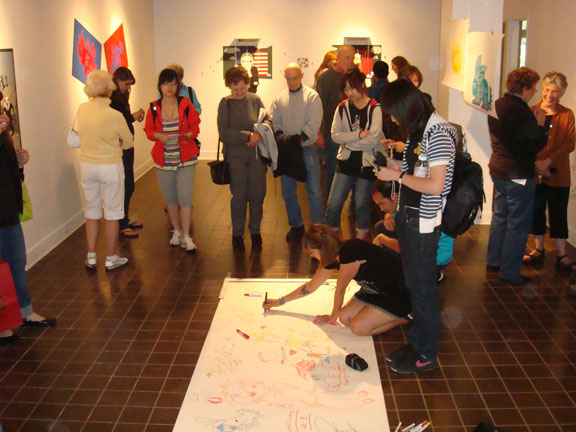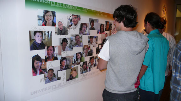 美国俄勒冈大学建筑与艺术学院与304am永利集团官网的课程合作交流,经过一周的紧张工作,在中美两校的师生共同努力下,按时完成了课题创作,6月20日上午,进行了紧张的布展工作,于下午三时,中美两校课程交流作业展在美国俄勒冈大学建筑与艺术学院展厅开幕。美国俄勒冈大学建筑与艺术学院美术系主任、谭颖教授、王传东教授、赵进教授、美方相关教师、接待师生的家庭、全体课程交流访问团其他成员参加了展览。谭颖教授、王传东教授代表课程合作双方向两校课程交流班的同学颁发了结业证书。 此次结业展览,是经过两校师生共同协作、寻找课程主题、相互沟通,在考察校园、城市、历史文化、自然环境等方面的前提下,将两国文化相互融合,通过不同表现形式,展示出多元的综合艺术氛围。同学们相互结成课题小组,充分沟通交流相互思想,每个选题的选择确定及表现形式都是由各组学生自行商量选定进行创作的,使项目形成良好的基础,指导老师从中启发引导创作,为课题的完成做好有力的保证。在连续的一周里,俄勒冈大学建筑与艺术学院为这次合作交流提供了做好的条件,不同课程教师为同学们进行了教学和示范,是参与课题项目的所有师生深受教益。此次合作交流的课程作业展,作品丰富,形式多样,作品有多媒体影像综合设计、平面设计、互动装置设计、动画设计、沙滩造型与绘画、摄影等多种表现形式,充分发挥的了同学们的探索精神与开阔的思路。展同时中还展示了同学们在搜集素材的过程中所做的速写采风、创作笔记等原始素材。 展览活动中,美国俄勒冈大学建筑与艺术学院美术系主任 对此次活动发表了祝词、美国学生代表和永利官网学生代表学生表达了创作感受。谭颖教授、王传东教授为同学们颁发了课程结业证书。参加展览的来宾和师生都对此项合作交流表示了积极的肯定和评价。 在此次合作交流中,中美两校同学每天相伴,相互启发、合作创作、相互帮助、不同的文化背景下相互影响,结下了深厚的友谊。在接待家庭中亲身感受美国生活,同学们都期待与美国俄勒冈大学的学生不断加深合作交流,丰富创作内容,共同期望两校的友谊更加地久天长。