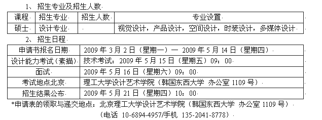 2009年度韩国东西大学校设计专业研究生院新生招收简章