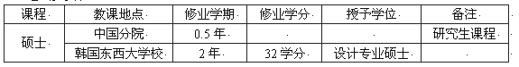 ② 学位论文提交资格a、 获得学分:硕士学位课程32学分【成绩B(3.0)以上】b、 外国语考试-韩语能力考试-考试免除:韩国语能力考试4级以上取得者 *相关成绩单复印件提交(原件自备) c、学会论文发表以及刊登 -硕士学位课程:在韩国学术振兴财团或候补登载学会发表1次以上。 10、奖学金(20名为基准) A、入学奖学金(北京理工大学分院授予) ① 入学成绩最为优秀者2名学费半免(50%) ② 入学成绩优秀者4名学费减免(25%) B、勤学奖学金(东西大学授予) 东西大学校修学1年后,根据大学院奖金授予规定执行。 报名咨询: ① 主页:http://graduate.dongseo.ac.kr/ ② 相关银行:到时通知 ③ 地址:北京理工大学设计艺术学院(韩国东西大学 办公室1109号) ④ 咨询:电话 10-6894-4957 / 传真 10-6894-4957 / 手机 135-2041-8778
