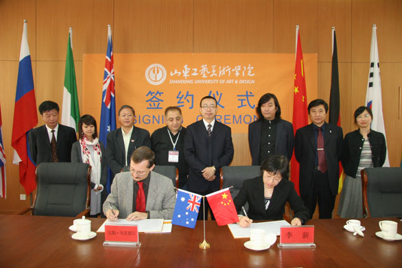 ,副院长李新,院长助理苗登宇,院长助理、办公室主任王立果,澳大利亚格里菲斯大学昆士兰美术学院代表团厄勒•布里德尔,皮特•万尼一行出席了签约仪式。签约仪式由副院长李新主持。