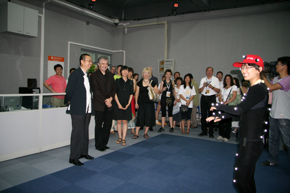 在数字艺术与传媒实验中心,与会人员先后参观了计算机辅助设计实验室、CG实验室、摄影棚、黑白暗房工作室、动画综合实验室、动作捕捉实验室、多媒体技术实验室、影视演播多功能厅,对该实验中心先进的设备、良好的环境给予了高度评价。在动作捕捉实验室,海内外友人观看了同学们现场作业的精彩场面,在影视演播多功能厅,永利官网动画专业的三部学生毕业作品《公路奇遇》、《街角》和《赤战空》,赢得了海内外友人的阵阵掌声。