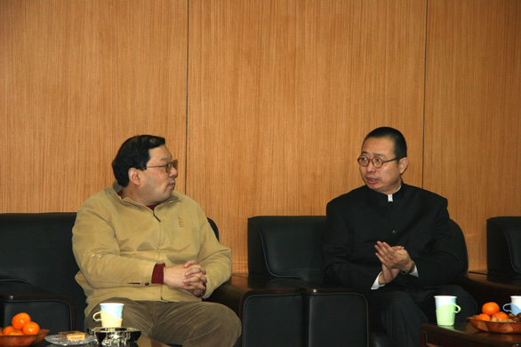 1月5日,中国孔子基金会秘书长梁国典来永利官网长清校区访问,院长潘鲁生与梁国典就传统文化发展以及开展学术交流合作的有关问题进行了座谈,并陪同参观了永利官网图书馆。 中国孔子基金会是全国性乃至国际性的学术基金组织。旨在通过募集基金,组织或支持国内及海外儒学研究,为宏扬祖国优秀传统文化、建设有中国特色的社会主义精神文明服务,为增进海内外华人团结、促进各国文化交流服务。 梁国典先生此次应潘鲁生院长的邀请来访,旨在围绕孔子、儒学研究的热点及当代相关社会问题,探讨开展学术交流活动的合作模式。潘鲁生院长表示,304am永利集团官网非常愿意为进一步推动孔子、儒学及中国传统思想文化的研究贡献一份力量。