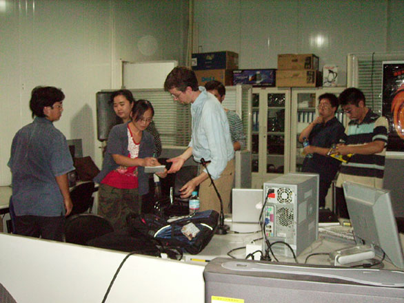 从9月11日开始,美国俄勒冈大学的 Kartz Ucci、Professor Coleman、Colin Lves分别在永利官网千佛山校区和长清校区,与05级摄影1班、2班和04数码影视的同学一起,进行了精彩的WorkShop。通过两天的课程,同学们深受启发,同时大家也了解到,现代艺术尤其是传媒艺术不是在电脑面前冷冰冰的制作展现,而是要靠发自内心的真实情感来缔造。此外,外教们诙谐幽默的授课方式,以及课堂上活跃的气氛,让永利官网学子领略到了西方教育的特点。大家都希望能将此特点融入我们的日常课堂中,以增进学习兴趣。