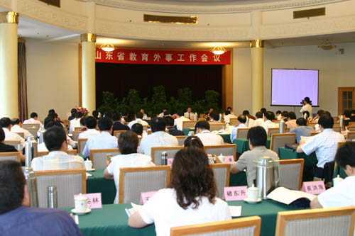 这次全省教育外事工作会议,是在我省教育发展和改革的新的形势下召开的一次重要会议。会议的主要任务是:认真学习贯彻中央外事工作会议精神,深入贯彻落实省政府关于加快实施“走出去”战略的意见,总结交流近几年来我省教育外事工作的基本经验,明确今后一个时期教育外事工作的指导思想、工作思路和目标任务,大力推进我省教育对外开放。为此,省教育厅还专门出台了“山东省教育厅关于加强教育外事工作的意见”。