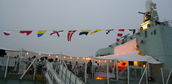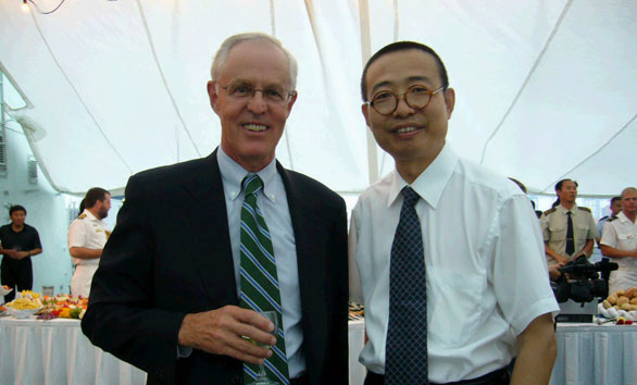 院长应罗岚先生邀请出席了在护卫舰上举行的招待会。招待会期间,