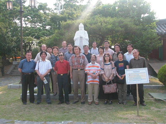 六月十日,代表团成员一起参观了大邱乡校,并在我院雕塑系陈佶生教授一九九七年制作的“孔子像”前合影留念。此雕塑是九七年代表青岛市政府赠送大邱市的礼品,被永久性珍藏在大邱市。