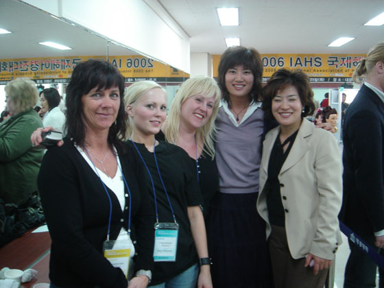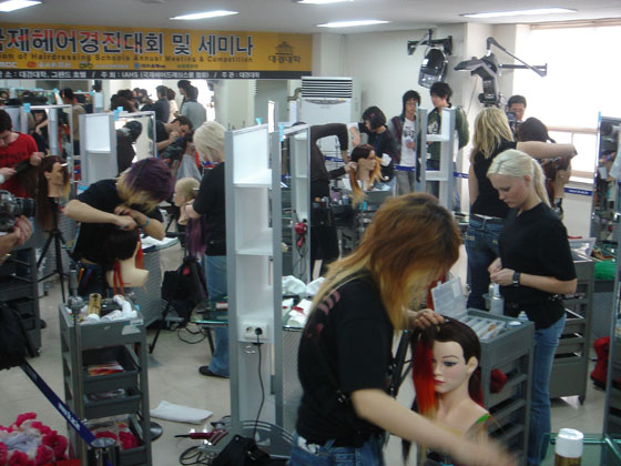 IAHS办的国际性化妆发型设计竞争大会于2006年4月21日—25日在韩国庆山市大庆大学召开。这次化妆发型比赛大会在欧洲来说是一个奥林匹克大会,有世界性规模,对亚洲来说是第一次召开的化妆发型比赛大会,是各大学之间发挥实力的化妆发型比赛的大会,来自中国、韩国、日本、丹麦、瑞典、挪威等十多个国家参加,我院赵炜璐列席了会议。 国际化妆发型大学生协会本部驻在法国,从1995年诞生,会员国有30多个国家,此次比赛是在欧洲激烈的竞争下选出13个队,亚洲15个队,共28个队100多名竞争者参加,也有非竞争者之间的表演。4月22日下午1点,化妆发型比赛于韩国大庆大学美发教室举行,是利用假长发模型进行女性化妆发型艺术设计和男性剪发比赛,时间分两个阶段,共两个小时,由来自世界各地的化妆发型艺术家,世界最高剪发手和欧洲化妆发型联盟会长Carina Ladow女士当场评分。这次女性化妆发型艺术设计的作品,因为世界各国的发型、发色、发式各不相同,所以具有形象性、装饰性、观赏性、趣味性、象征性等艺术形态的作品逐渐呈现出不同的感觉,彩色发型艺术与肤色、眼睛、服饰、头饰以及妆形等各种色彩相互搭配形成了和谐的色彩美。国际男子发型趋势,仍以短发占主导地位,趋向体现发型的色调,突出个性,同时彩色漂染已占有重要位置,刘海和发稍处用剪的方法做出特殊形状,使男子发型增添了几许生动和浪漫的情趣。之外非竞争部门也表演出自己的发型艺术作品。这次大会还有发型模型表演、韩国服装模特表演、传统服装表演,同时还召开了世界级的发型学术研讨会,本次活动为今后化妆与发型专业的教师和学生提供了一个学术交流的平台,同时也向社会集中展示了时尚艺术的最新成果。