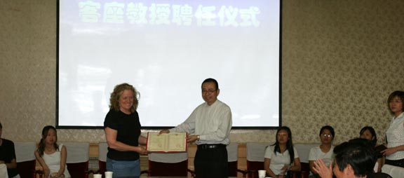 2004年5月30日下午,304am永利集团官网在二楼会议室举行了聘任美国纤维艺术家南茜女士和清华大学美术学院林乐成教授客座教授的仪式。