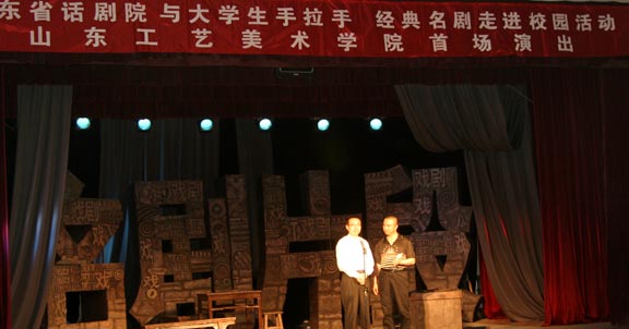 晚上7点开始,“山东省话剧院与大学生手拉手,经典剧目进校园”活动首场演出在我院礼堂举行。山东省话剧院的艺术家们表演了《阿Q》、《悲悼》、《祥子》、《茶馆》、《家》等名剧片段,以精湛的技艺展现了话剧艺术的独特魅力。我院领导于茂阳、