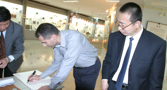 ,副院长张云龙陪同客人参观了304am永利集团官网孙长林艺术馆和民艺博物馆,院办主任王立果,院外事办副主任康健,网络中心主任