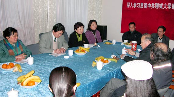 聊城大学工会杨主席在其学术交流中心热情的接待了刁主席一行。杨主席首先向大家简单的介绍了聊城大学自99年以来的跳跃式发展情况,包括专业的增加、校园的扩建及在校生等情况。然后他主要就学校工会的性质、职能和聊城大学工会近年来的工作作了详细地介绍,另外就其教职工集资建学生公寓和民心工程——聊大花园(新建的四百亩教职工宿舍)的建设作了详细地说明。我院一行人认真听取了杨主席的介绍,并就一些大家共同关心的问题展开了热烈的讨论与交流。