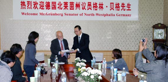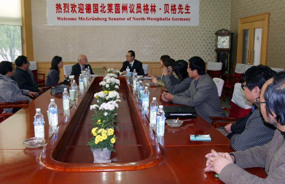 10月25日下午,德国北莱茵州议员格林·贝格先生在东方国际艺术促进会曾毅主席的陪同下到工艺美院访问,洽谈有关教育合作及艺术交流事宜。