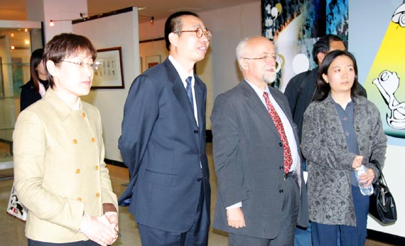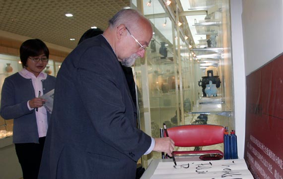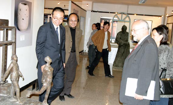 随后,贝格先生一行参观了“30周年校庆教师·校友·学生作品展”,“新校区规划设计方案展览”,以及孙长林艺术馆和博物馆陈列的艺术品。