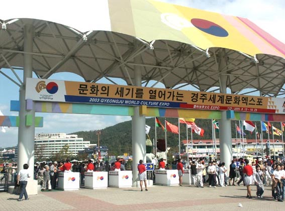庆州位于韩国庆尚北道的东南部,距韩国第三大城市大邱约70公里,是韩国佛教文化鼎盛时期的代表,也是有名的故都。为创造引导21世纪的新文化,庆尚北道与庆州市共同举办世界文化博览会,使过热追求产业化过程中被破坏和丢弃的文化遗产重放光辉。博览会每两年举行一次。