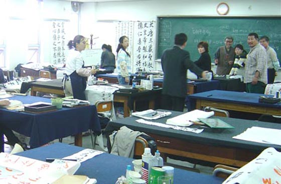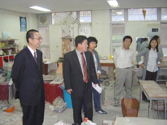 潘院长一行在裴校长的陪同下参观了大邱艺术大学的教学情况,重点考察了与双方合作交流关系密切的设计系的课堂教学情况和实习制作场所,并参观了教师作品展览,大家普遍认为该校的教学管理非常符合艺术教育的规律和特点。