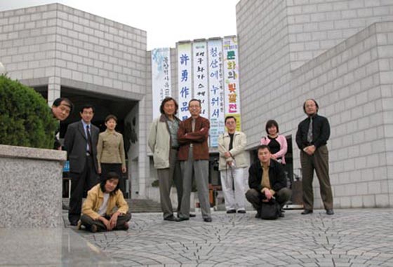 此外,潘院长一行还考察了大邱艺术总会并观看了以“东方思想与当代艺术”为主题的作品联展。大邱艺术总会是一个很好的艺术作品展览场地,这次主题展以启明大学美术学院西洋画教授许勇等11位画家及设计家的作品展组成,其中有的作品充分利用各种材质呈现出不同的艺术效果,很有创意。访问团还考察了大邱市画廊一条街,这里集中了不同风格的画廊20余家,是当地画廊非常集中的一个区域。潘院长还与大邱有名的留法油画家曹贵石先生进行了交流。访问团在到韩国短短的三天时间里先后与善邻大学、大邱艺术大学签订了友好合作协议,韩国著名文化交流活动家何传乾先生做了大量具体细致的工作,为我院在对外交流合作办学方面所取得的突破性成果付出了辛勤努力,其敬业精神和工作的严谨态度给访问团留下了深刻印象。