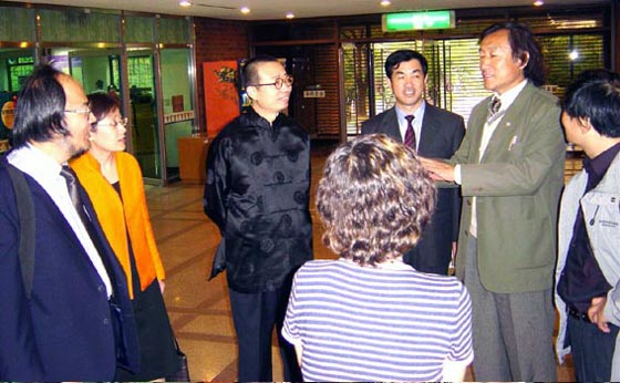博士为团长的赴韩访问团一行五人于当地时间下午六点抵达大邱市。晚上,在下榻的酒店潘院长召集访问团全体成员召开会议,把举行中韩现代美术设计海报展第二阶段展览开幕式的有关事宜、学术交流活动的原则、思路和要求作了部署,对具体工作进行了分工,并强调了出访纪律。