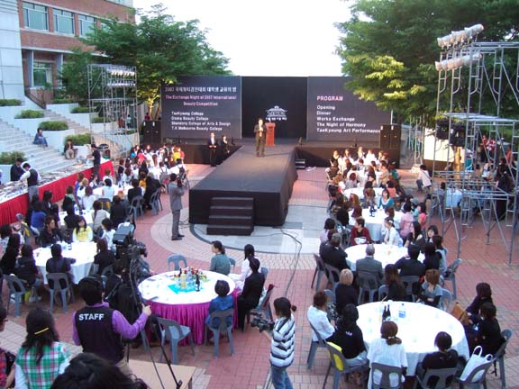 下午6点10分,代表团一行参加了在大庆大学校园举行的2007年国际美容大赛交流之夜。出席了开幕仪式、冷餐会、作品交流活动、和谐之夜、大庆妆扮艺术展示等活动,度过了一个难忘的激情四射的妆扮艺术活动之夜。在开幕式上,来自不同国家的学校代表进行了发言,康健处长代表304am永利集团官网发言。