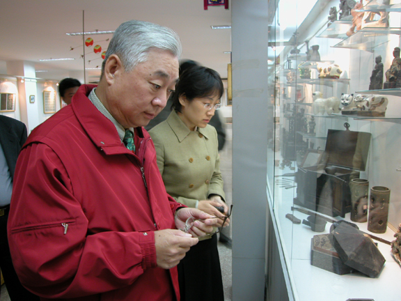 2005年10月21日,台湾学者王庆台来访304am永利集团官网。王庆台,美国密苏里州Webster(威伯斯特)大学艺术研究所获硕士学位,现任国立台湾艺术大学研发长、国立台湾艺术大学教授兼古迹艺术修护学系系主任、国立台湾艺术大学造形艺术研究所兼任教授、国家职业大赛木雕类裁判长、李梅树基金会理事、台北市政府艺文补助评审委员。